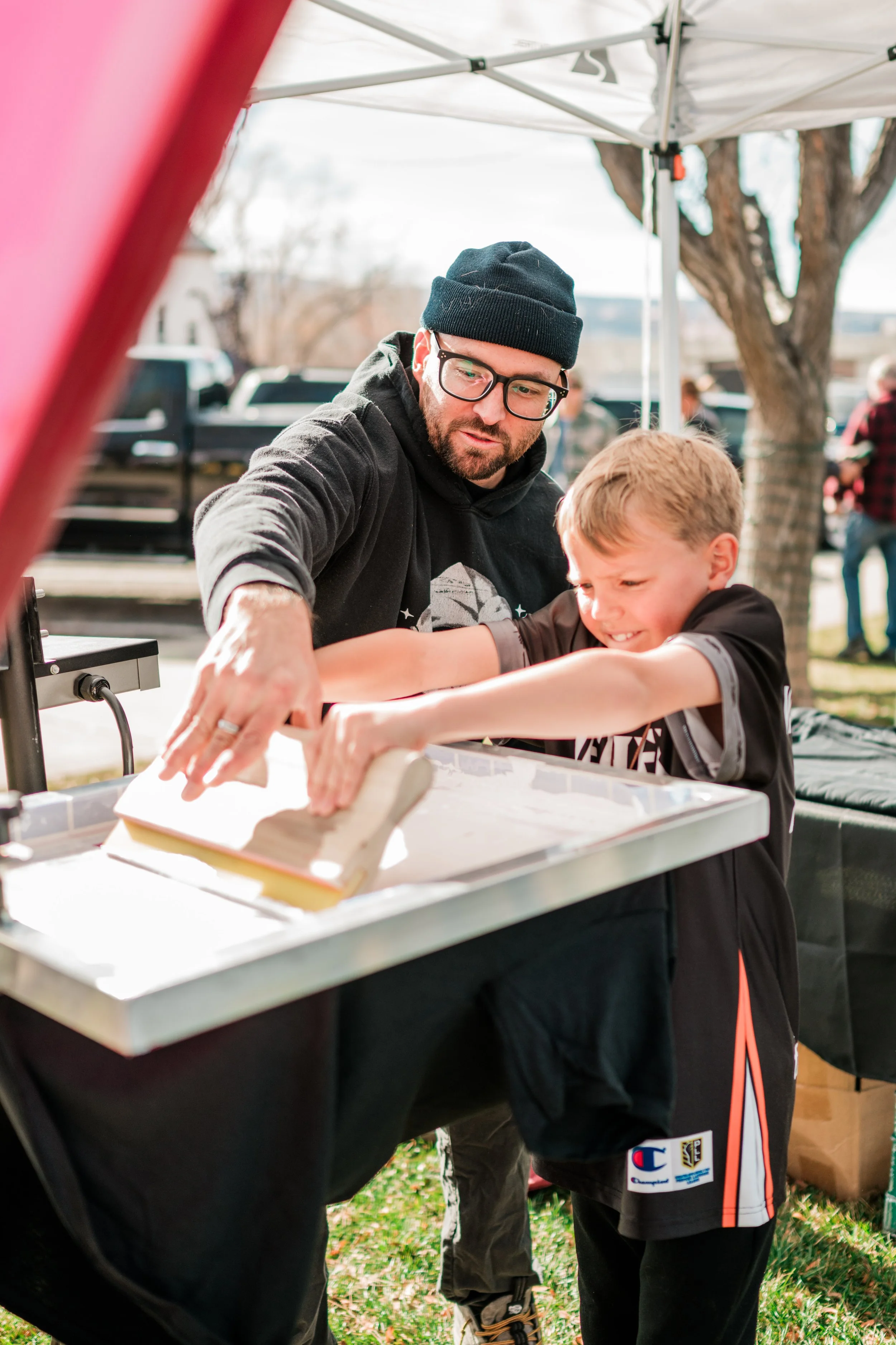 I provide custom screen printing services for t-shirts, hoodies, and other apparel, all printed right here in Grand Junction. I work with local businesses, bands, recovery groups, and extreme sports brands across the Western Slope to create durable, high-quality prints that stand up to wear and tear. Whether you need a small run of shirts for your staff or a full line of merch for your next event, I handle every step with care—from design to final print.